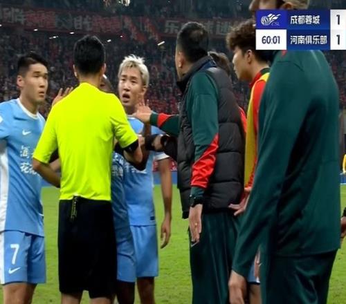 而其他河南队球员也纷纷找主裁和第四官员投诉,如果河南队赛后就蓉城球迷的歧视行为上诉,恐怕俱乐部也将因此受到重罚。