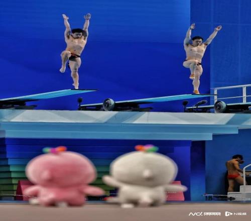 在上午最先进行的男子团体双人3米板比赛中,广东队由奥运冠军谢思埸领衔,他搭档黄博文出战;广东队派出的另一对选手是郭昊宇/胡宇康组合。